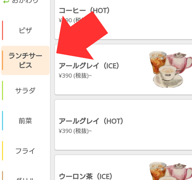 ドリンクをタップしてしまったからサービスのサラダが