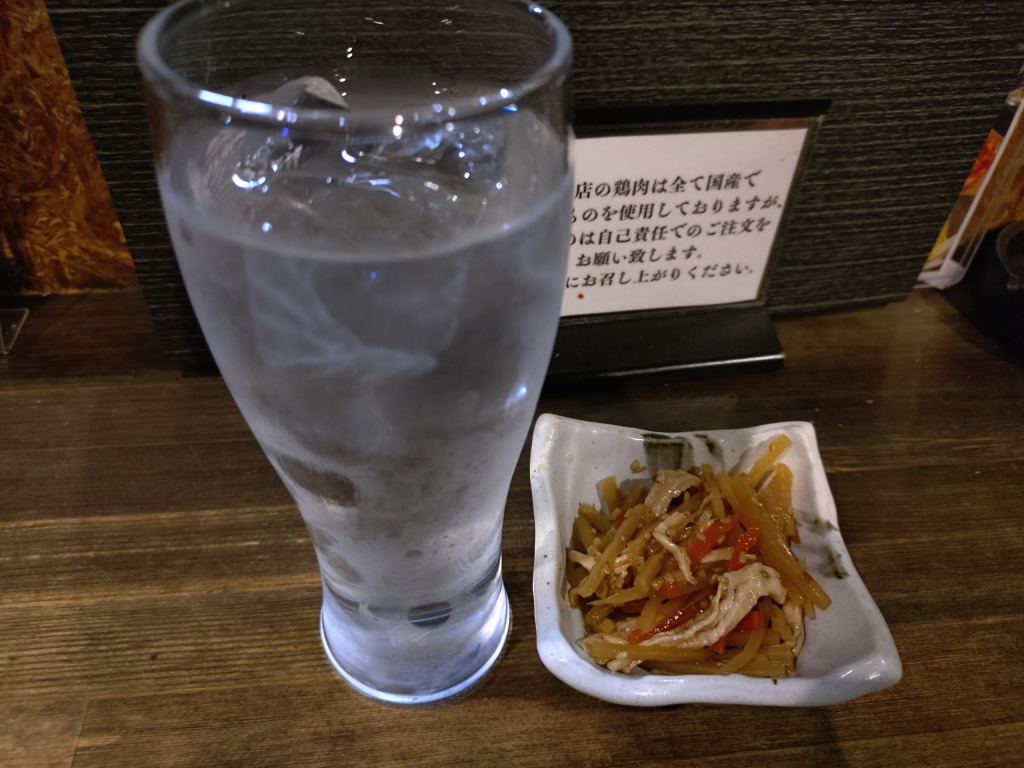 麦焼酎水割り 二階堂と付き出し